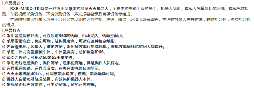 相關(guān)標(biāo)簽: RXR-M40D-TK42 消防滅火機(jī)器人